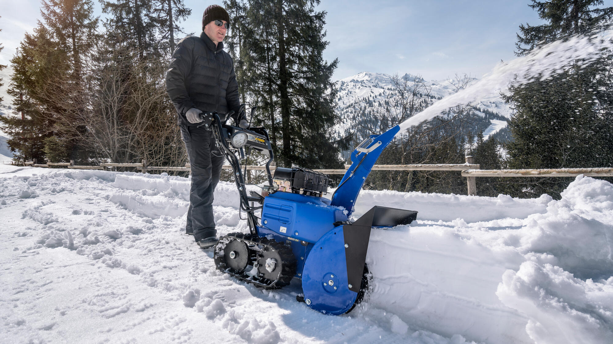 Управлять снегоуборщиком одним рычагом — проще простого, скорость регулируется точно и плавно при движении вперёд или назад, а резиновые гусеницы обеспечивает отличный захват и сцепление с поверхностью.