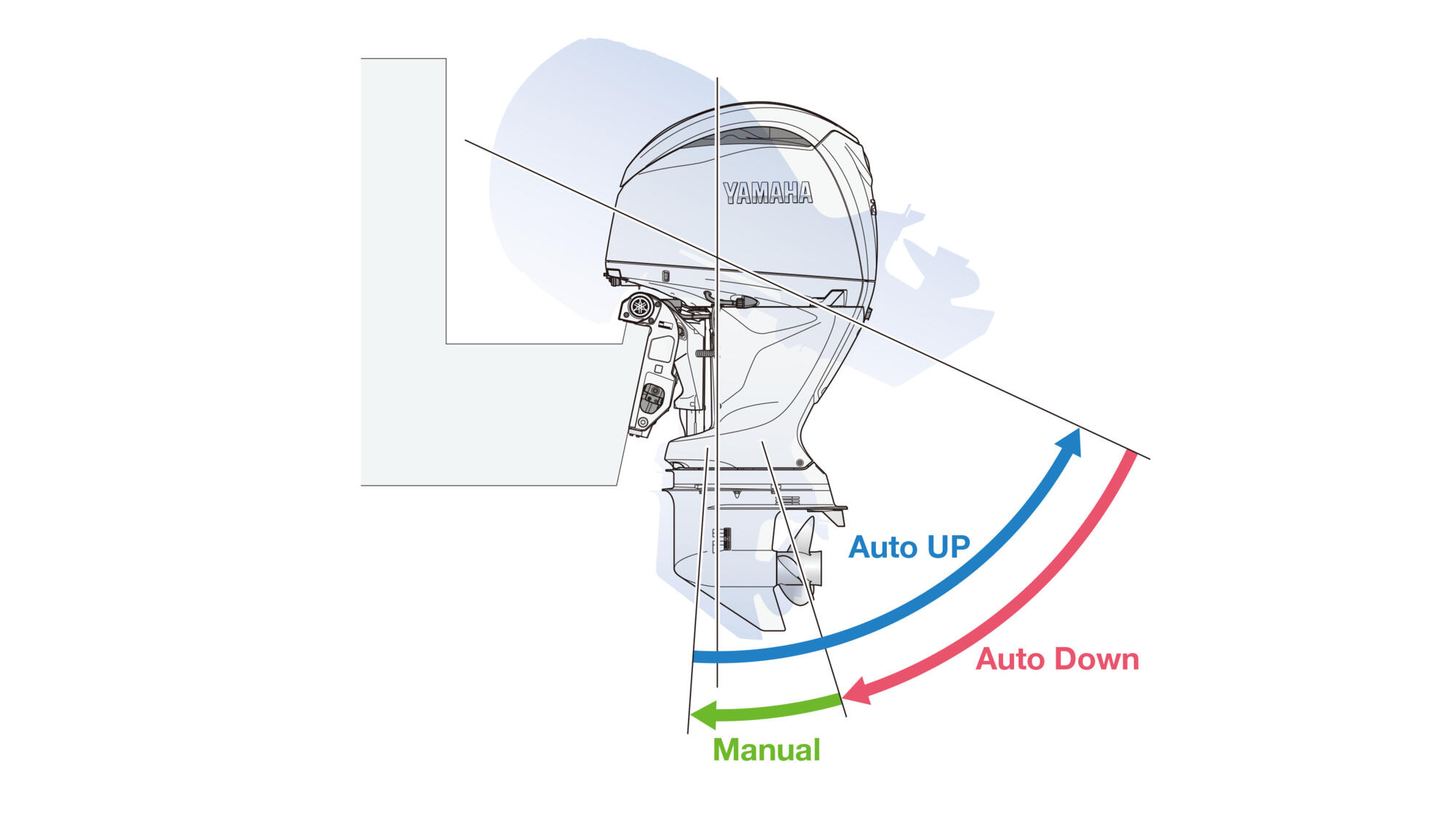 Yamaha eksklusiivne TotalTilt™ funktsioon võimaldab mootorit täielikult üles- või alla kallutada (kuni trimmi silinder vastu puutub) lihtsalt vastava nupu topeltvajutusega. Protsessi ajal annab signaalheli märku, et meeskond hoiaks mootorist eemale, ning integreeritud kallutuspiiraja on kohandatav iga paadi jaoks.