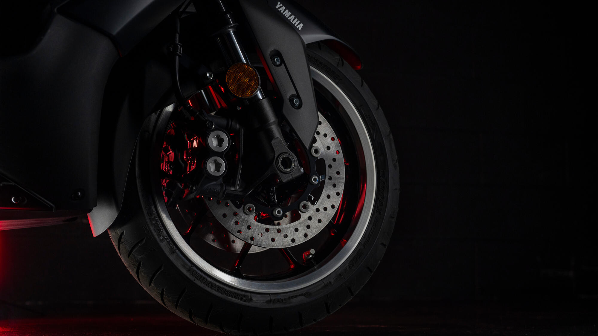 Kerged, spin-forged mustad veljed eriliselt freesitud säravate alumiiniumäärtega rõhutavad TMAX 25. aastapäeva sportlikku iseloomu. Sujuv ja täpne pidurdus on tagatud 267 mm diameetriga kahe eespiduri ketta ja 282 mm tagapiduri kettaga, samal ajal kui 120/70-15 esirehv ja lai 160/60-15 tagarehv tagavad suurepärase haarduvuse.