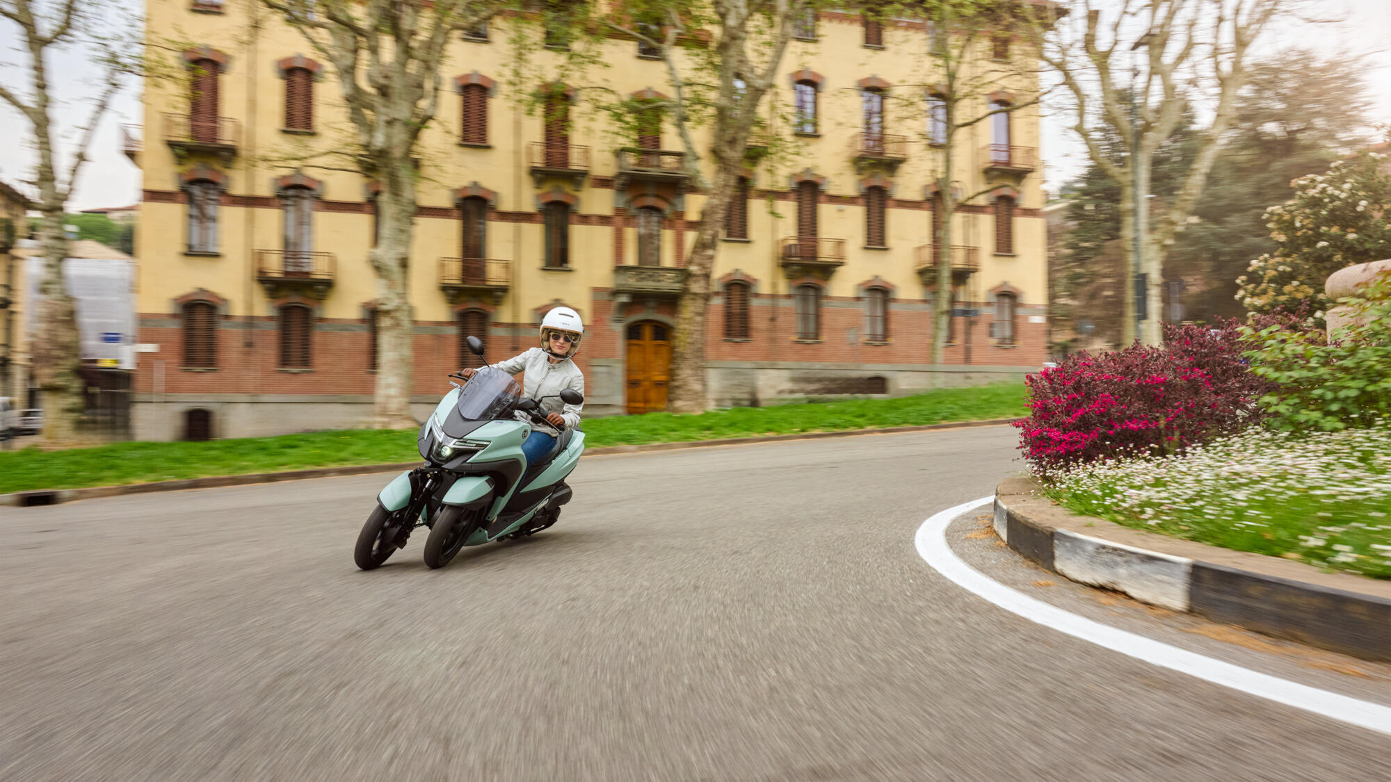 Selle stiilse kolmerattalise rolleriga sõitmine on lihtne ja intuitiivne. Keera vaid gaasi ning tunned, kuidas täisautomaatne 125 cm³ EURO5+ mootor kiirendab sujuvalt ja vaikselt. Yamaha Leaning Multi Wheel šassiilahendus tagab kindla ja enesekindla juhitavuse ka märjal ning ebatasasel teekattel.