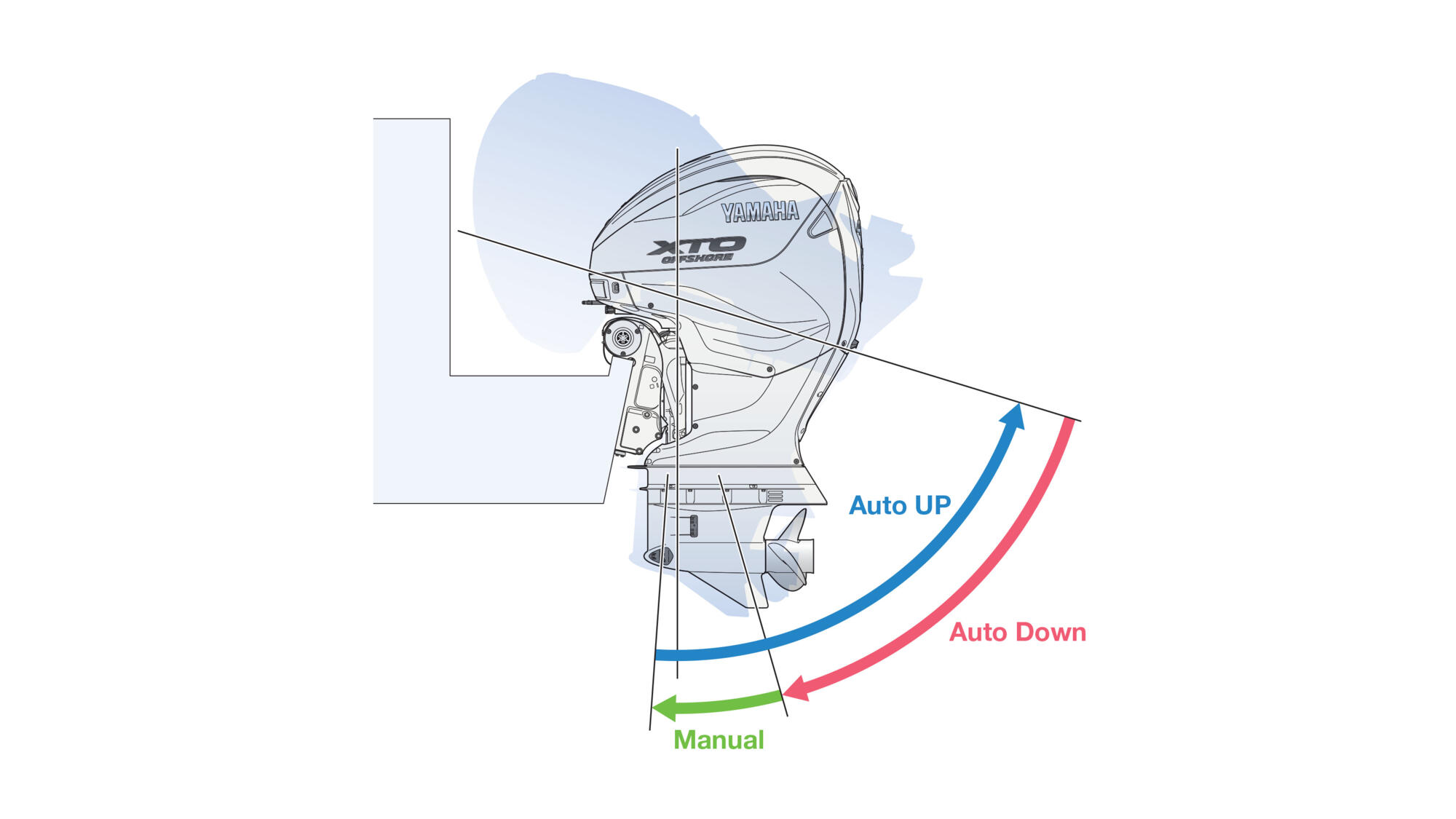 Yamaha eksklusiivne TotalTilt™ funktsioon võimaldab mootori täielikku üles- või alla kallutamist (kuni trimmi silindri kontaktini) igast asendist vaid nupu kahekordse vajutusega. Protsessi ajal kõlav helisignaal hoiatab meeskonda ohutuse tagamiseks ning kohandatav kallutuspiiraja võimaldab seadistada süsteemi vastavalt konkreetsele paadile.